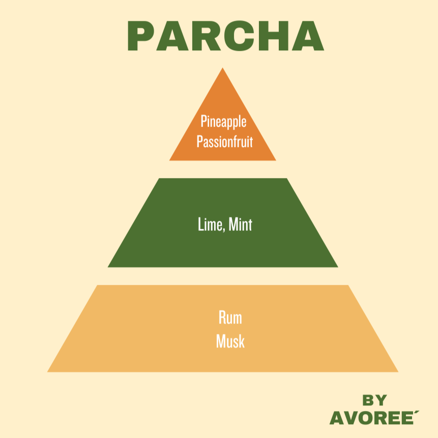 Parcha a bright, tropical fragrance bursting with sweet pineapple and tangy passionfruit, complemented by zesty lime and refreshing mint. Inspired by the beautiful island of Puerto Rico.